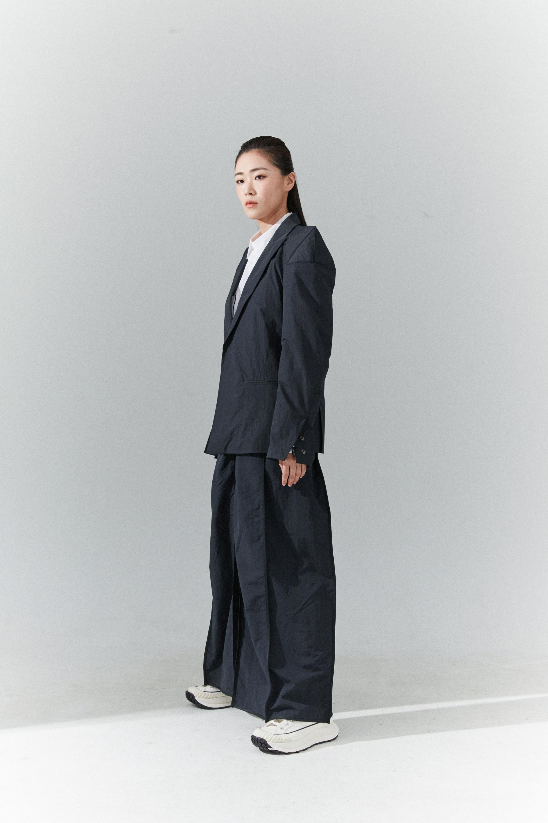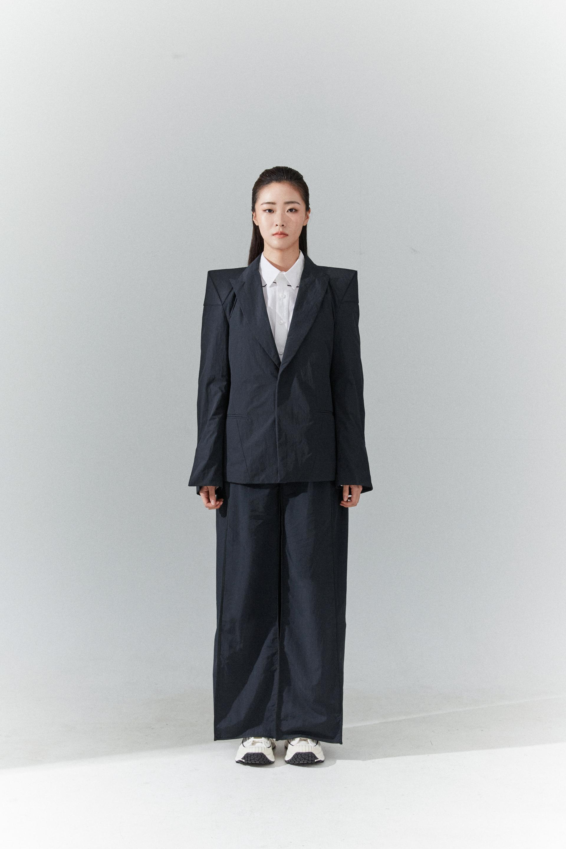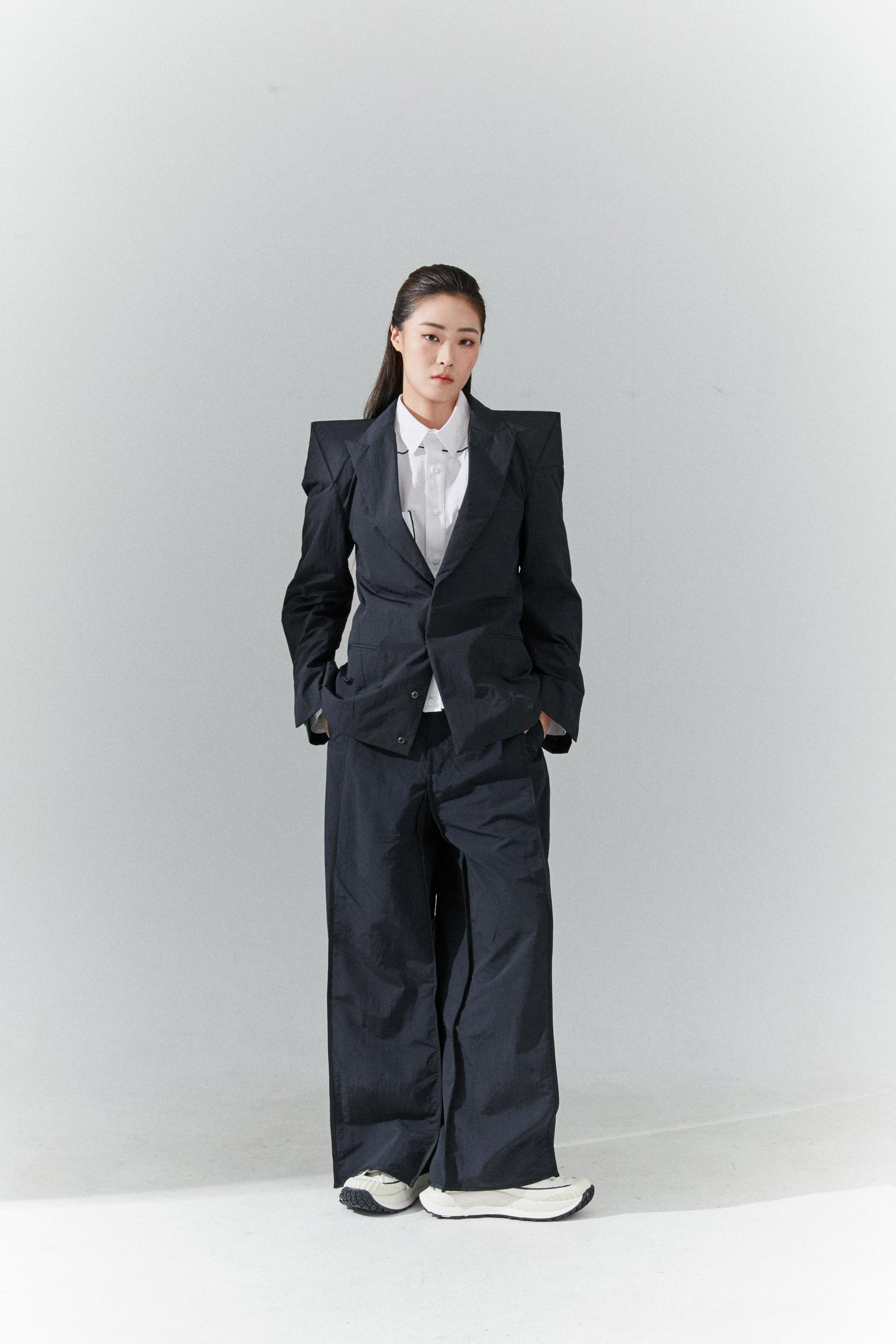 전면에 투웨이지퍼, 전면과 옆면사이 모서리와 안쪽에 각각 주머니 디테일 적용