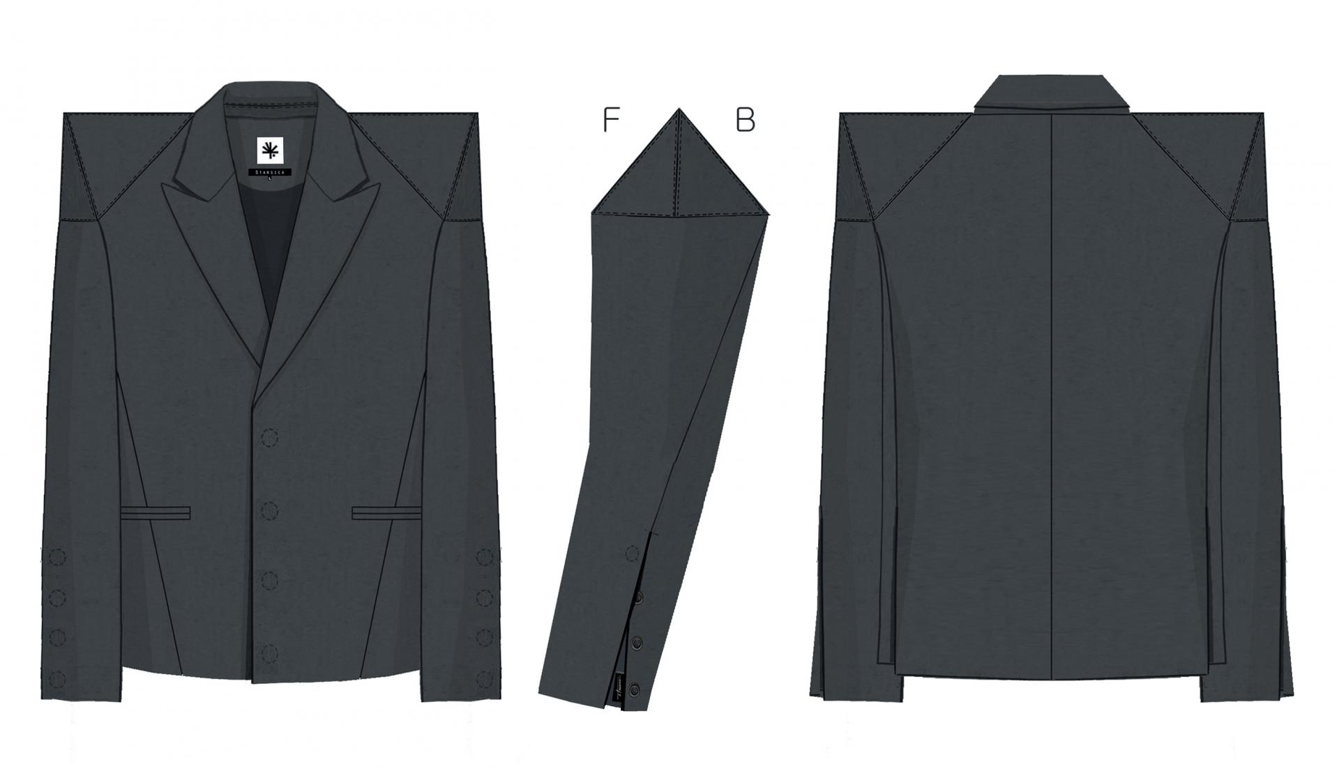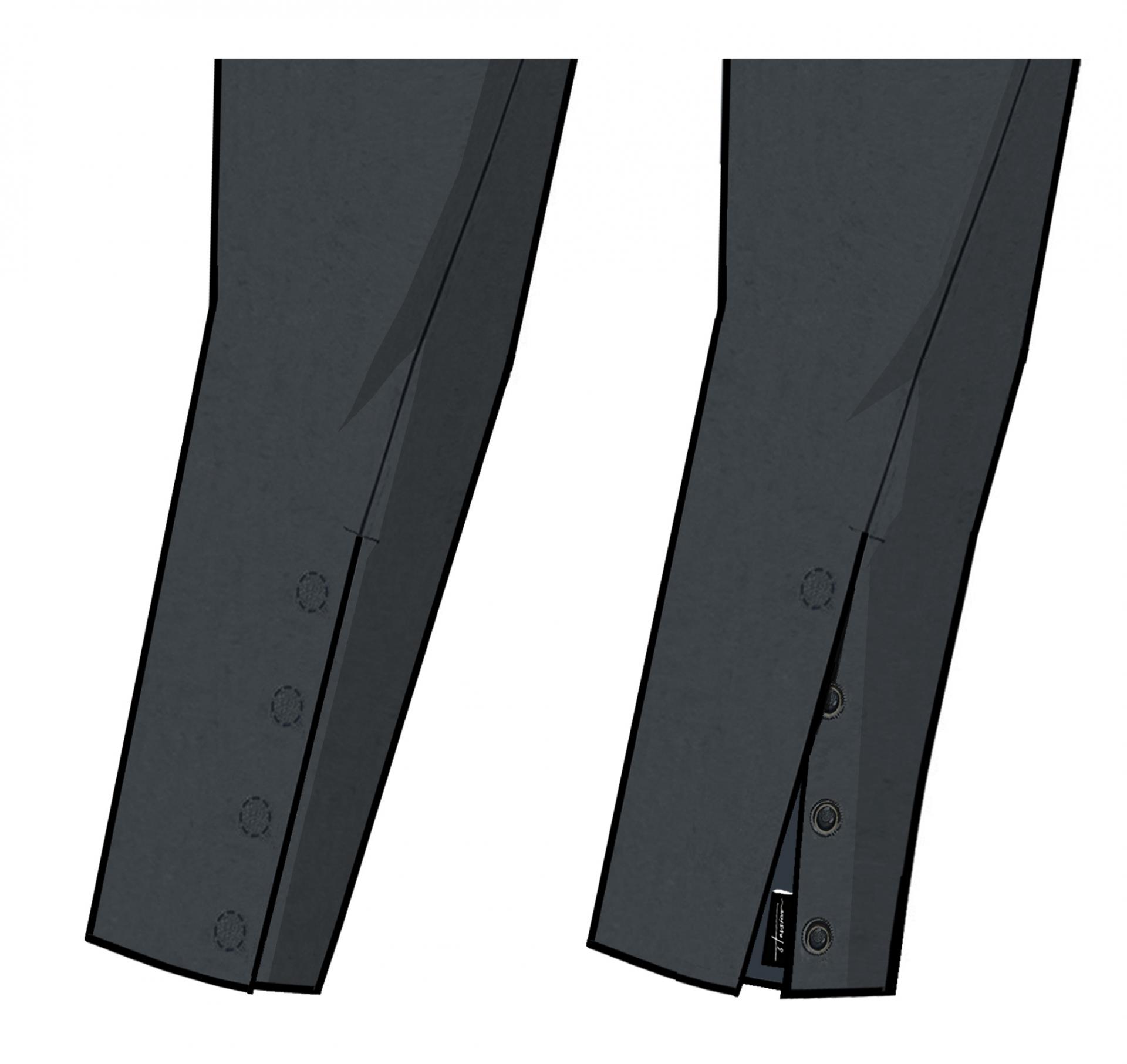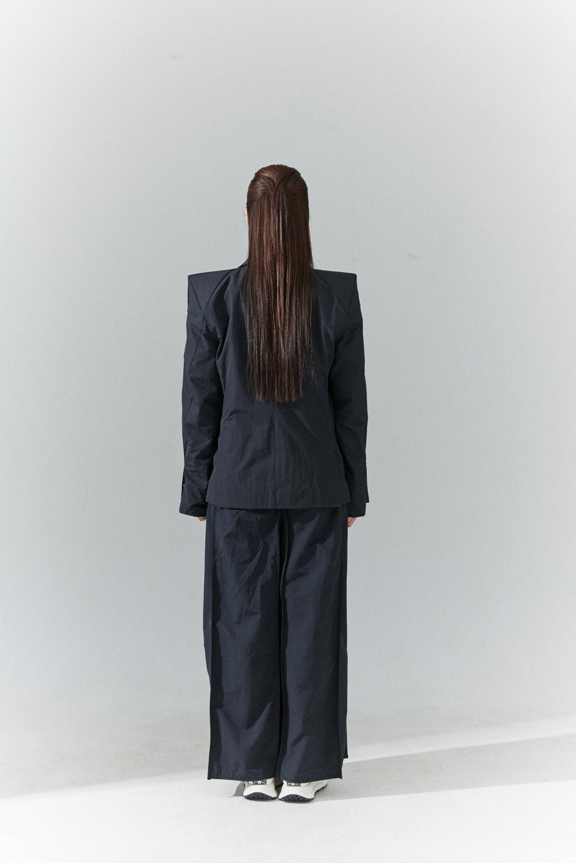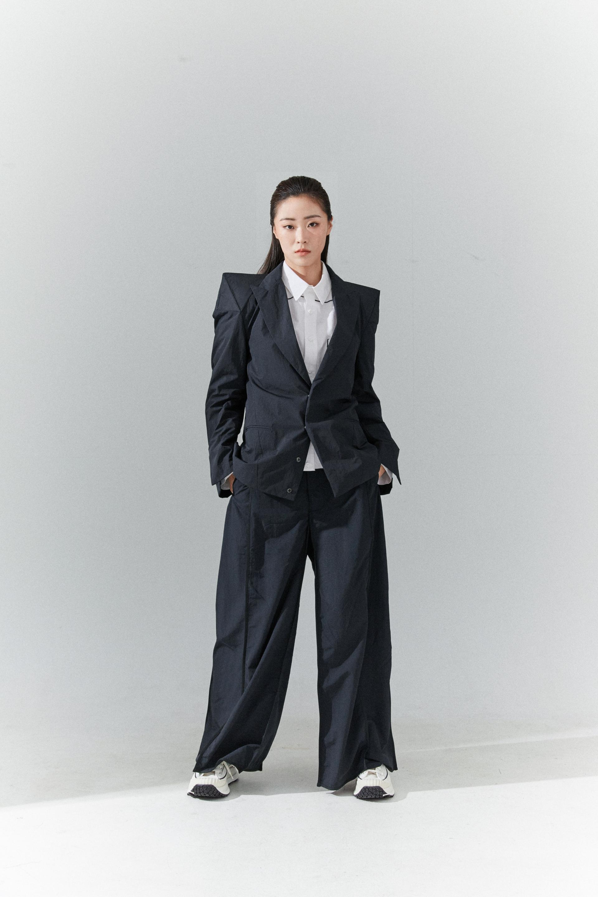 전면에 투웨이지퍼, 전면과 옆면사이 모서리와 안쪽에 각각 주머니 디테일 적용
