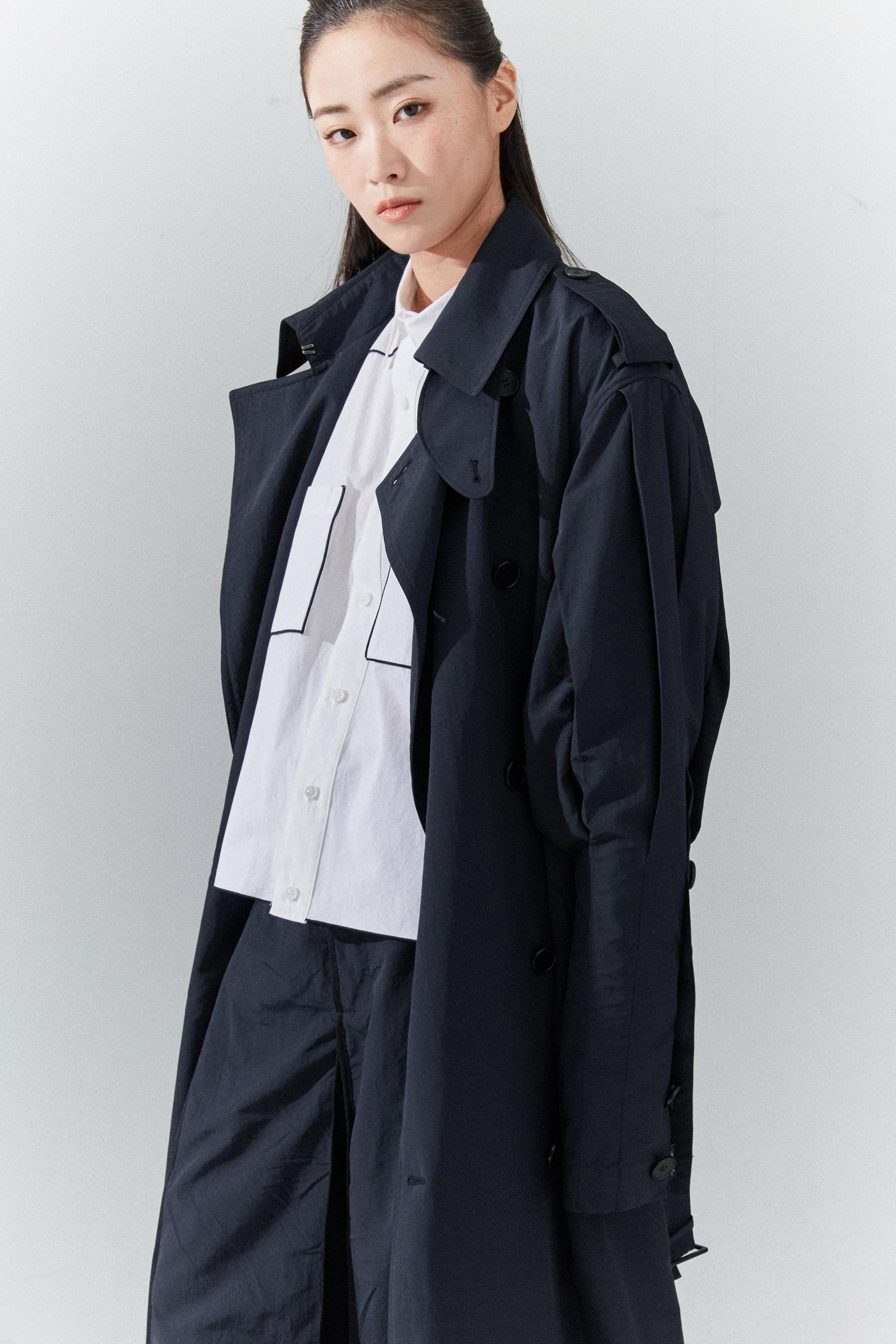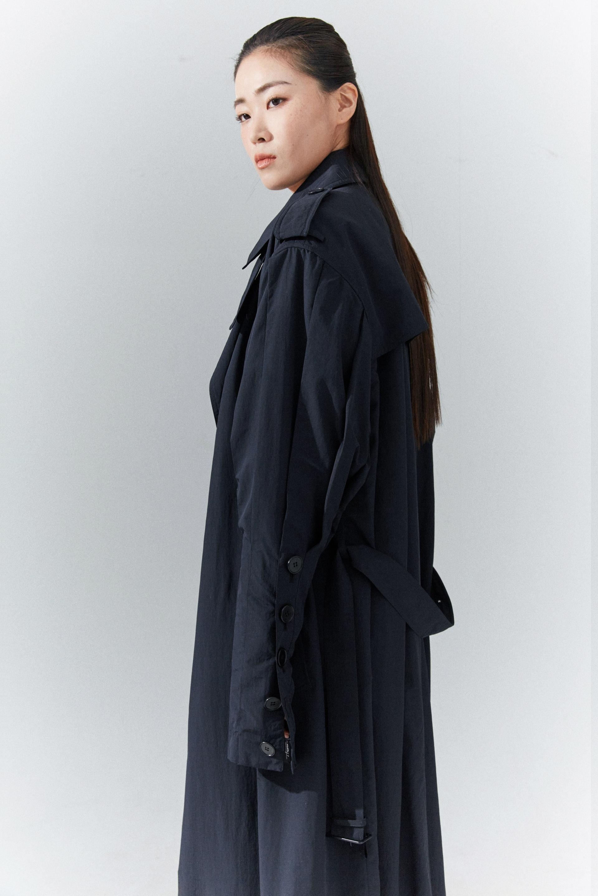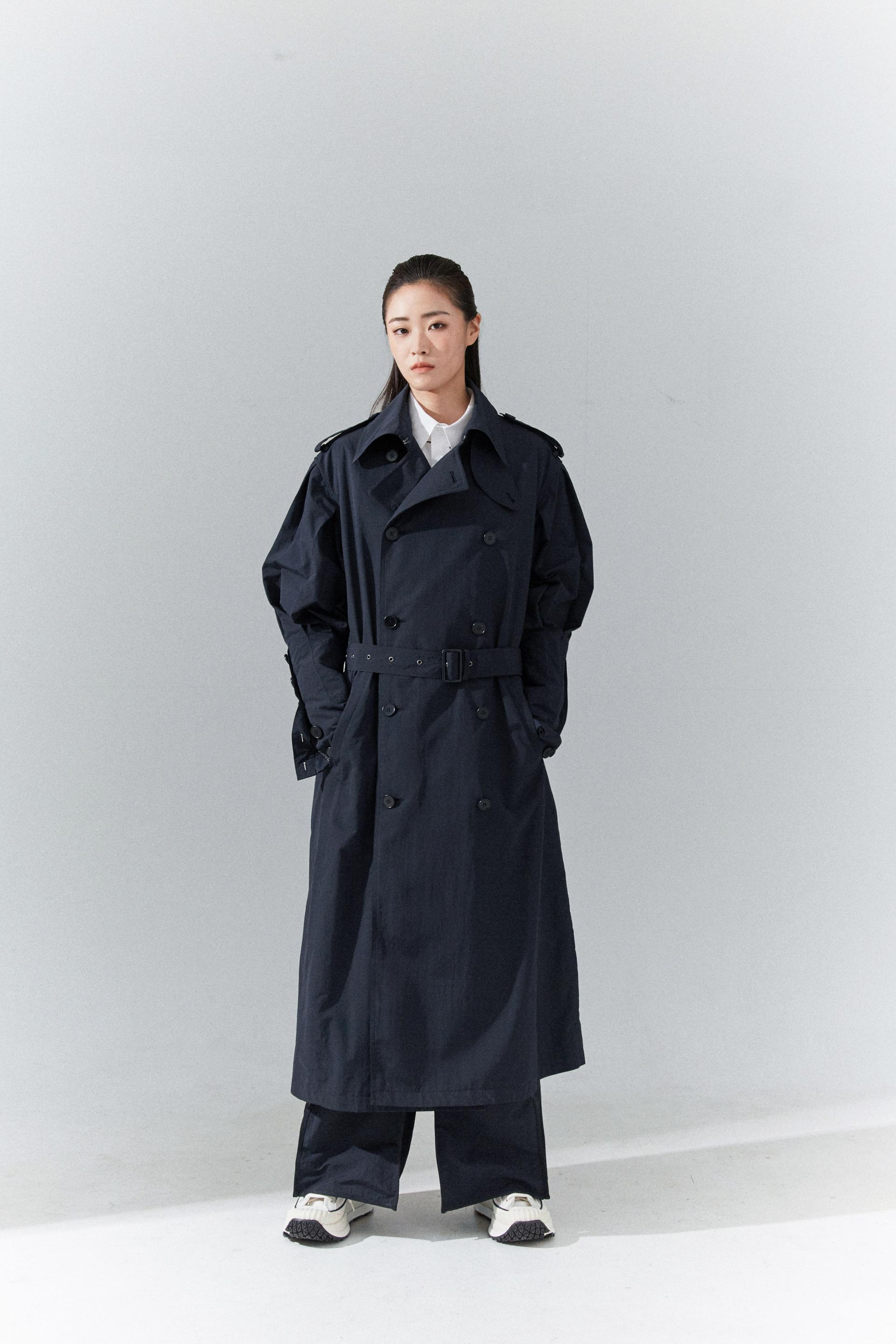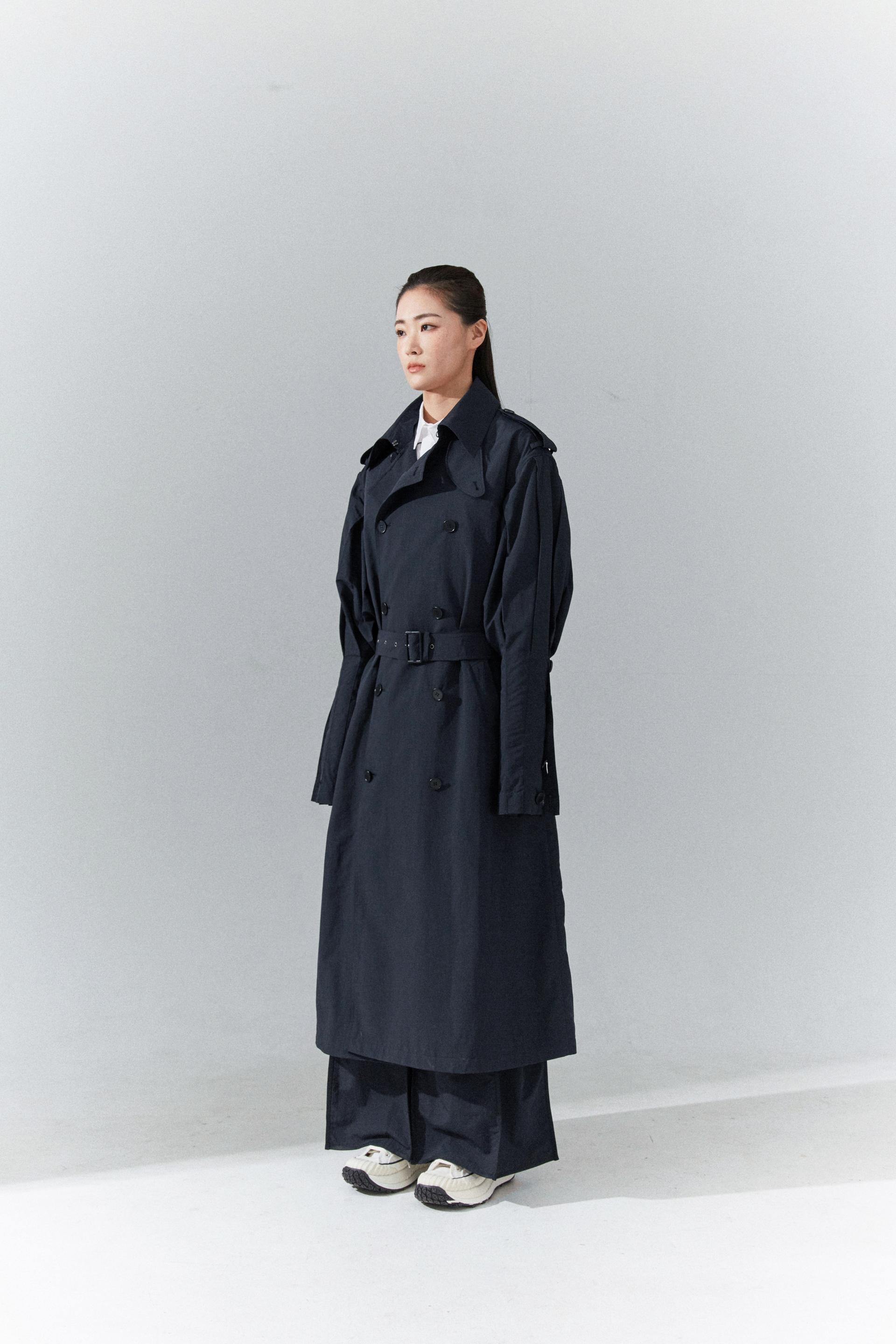 6각플리츠슬리브 트랜치코트