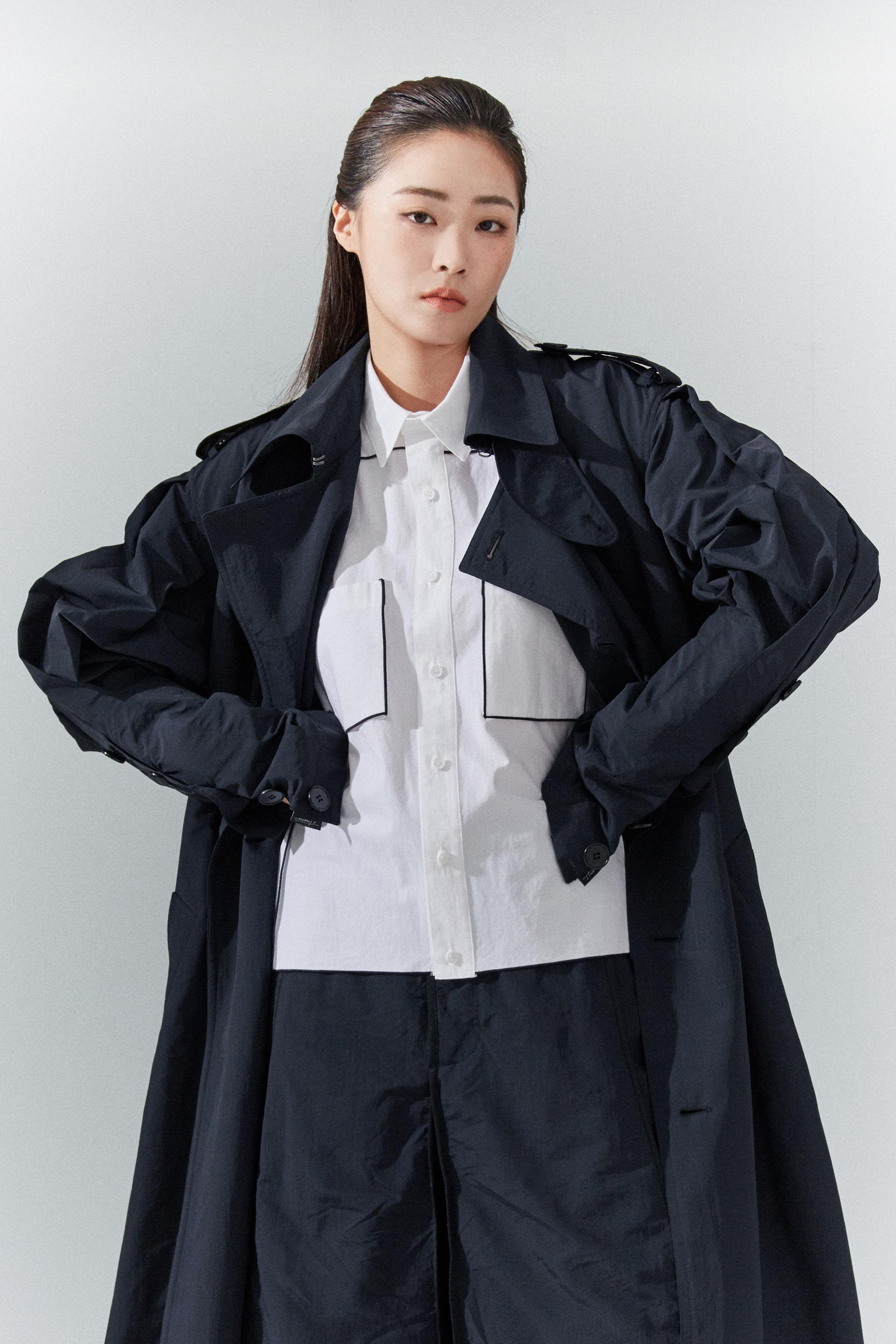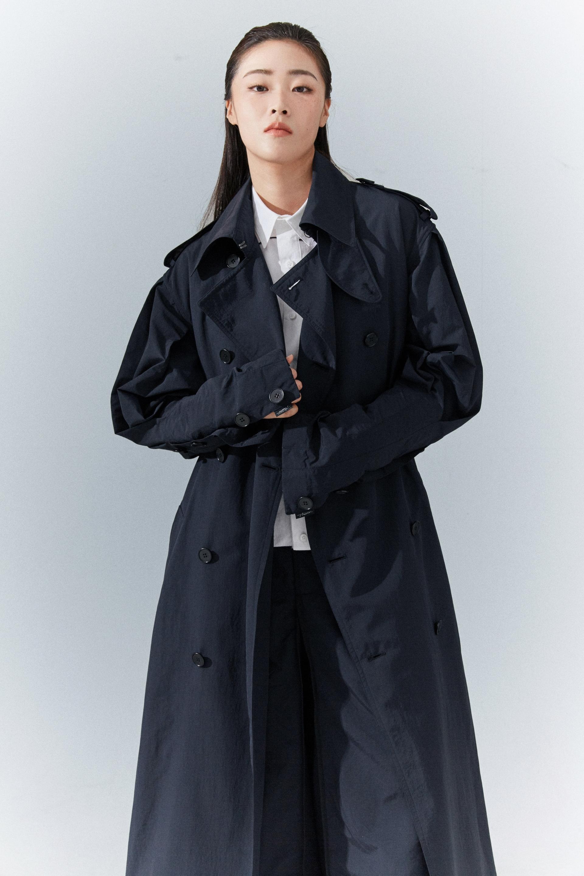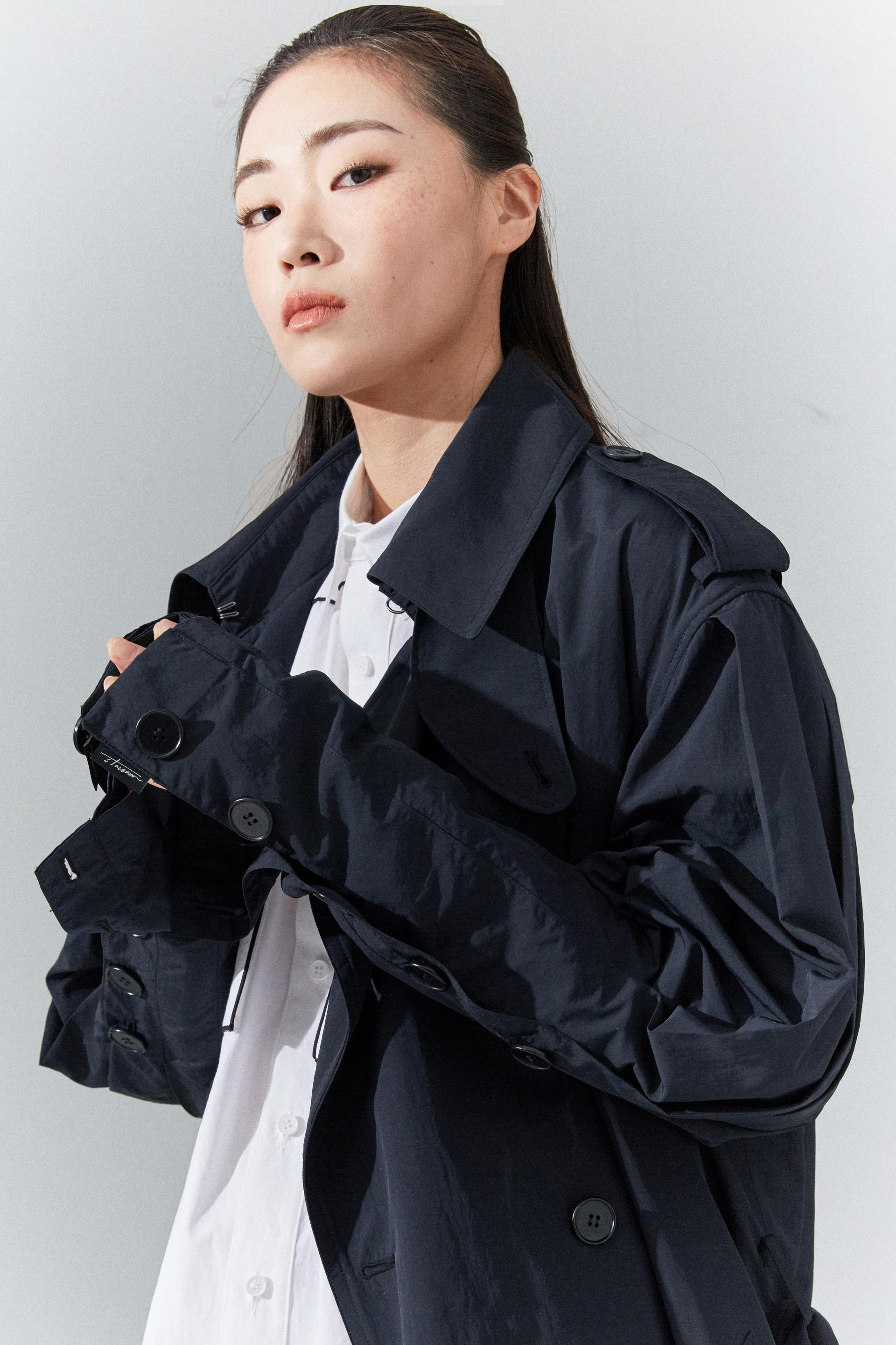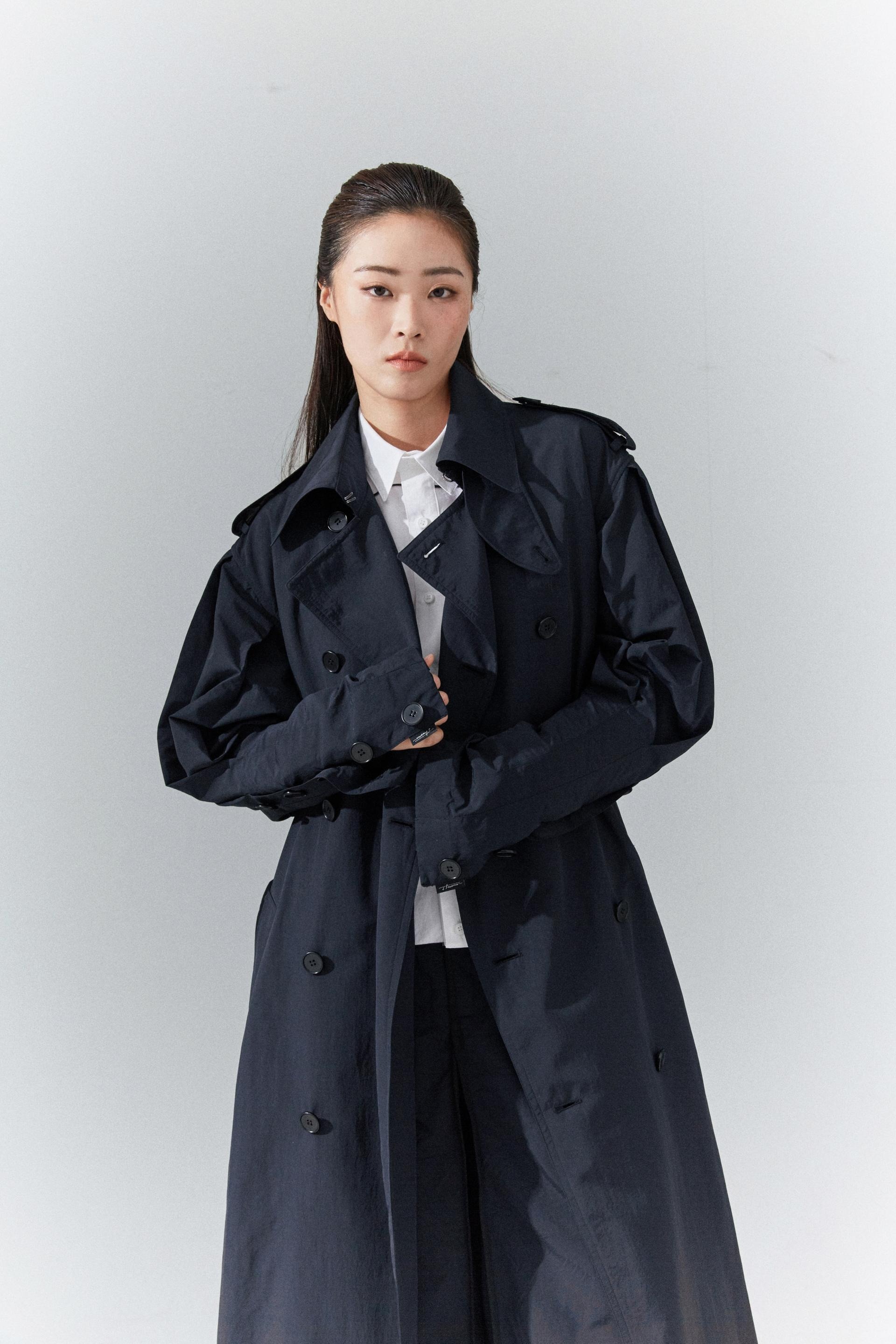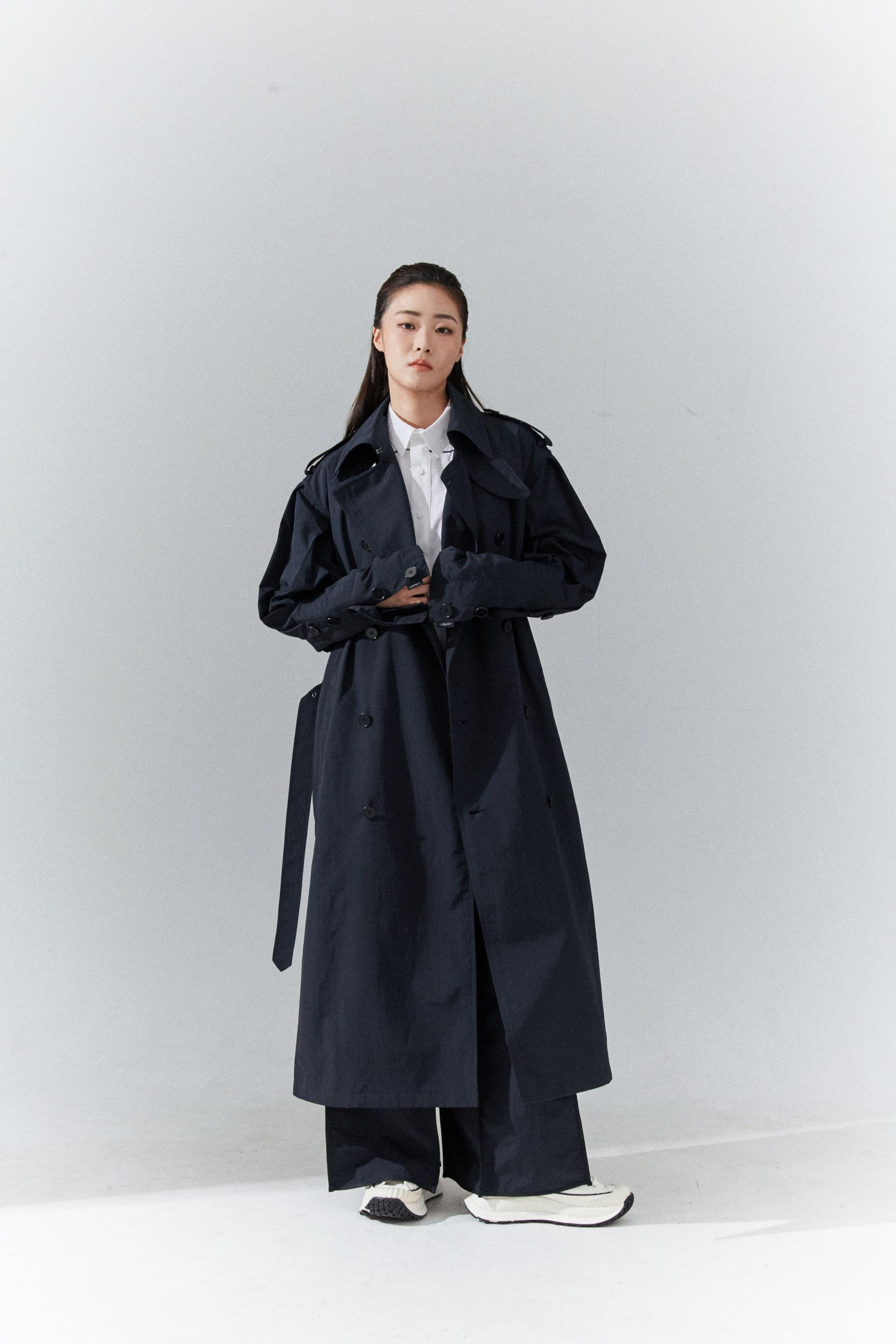 6각플리츠슬리브 트랜치코트