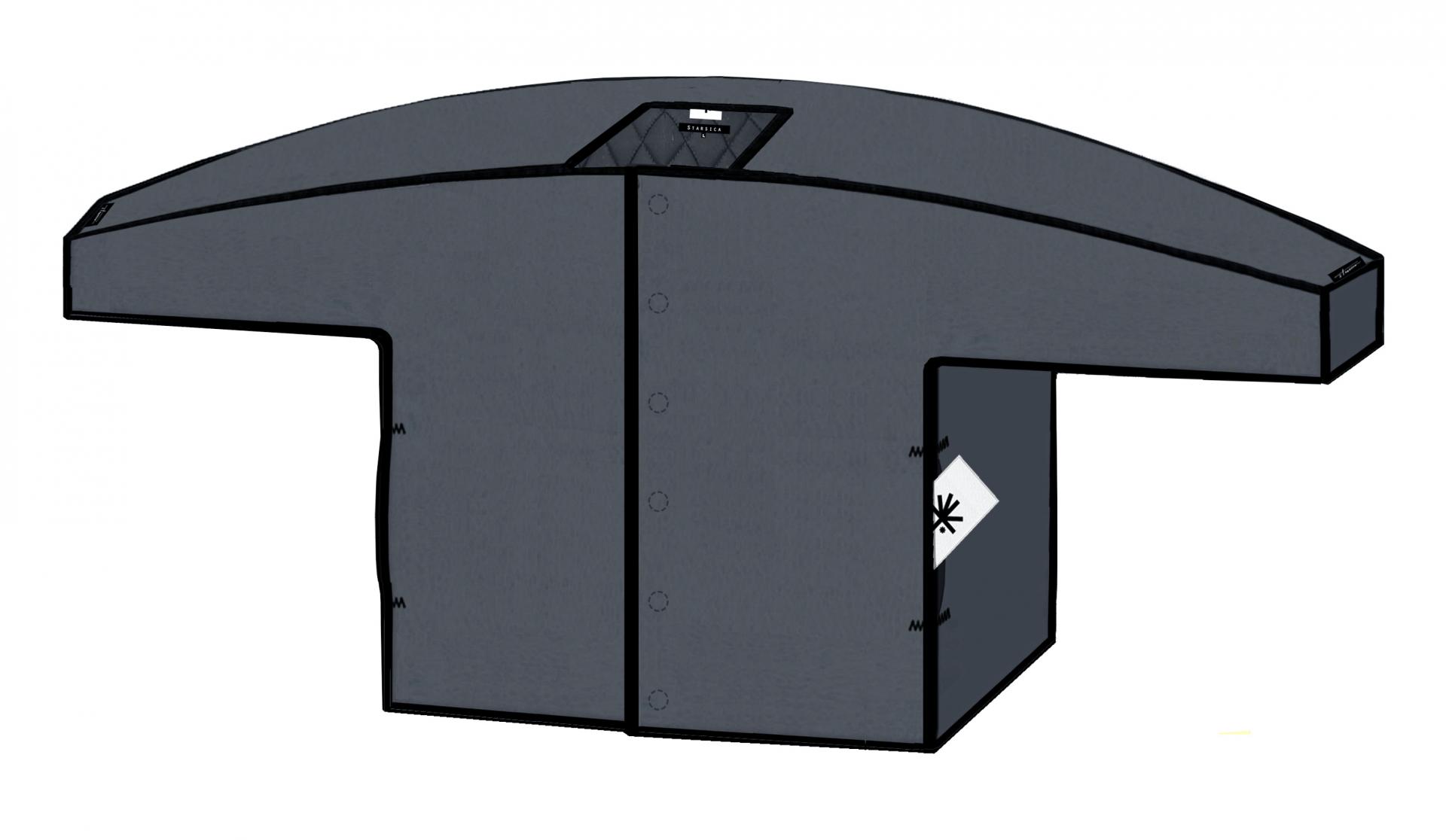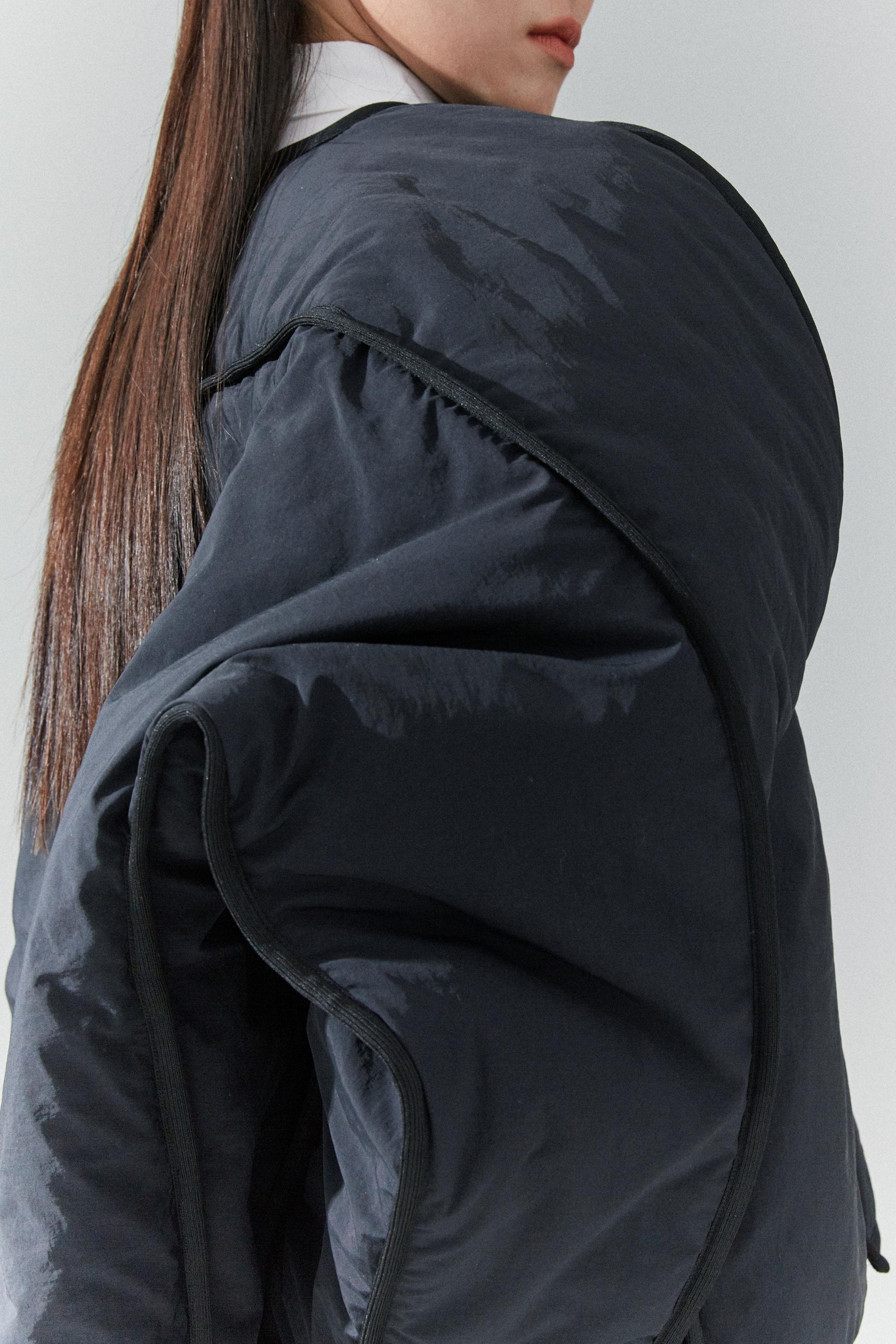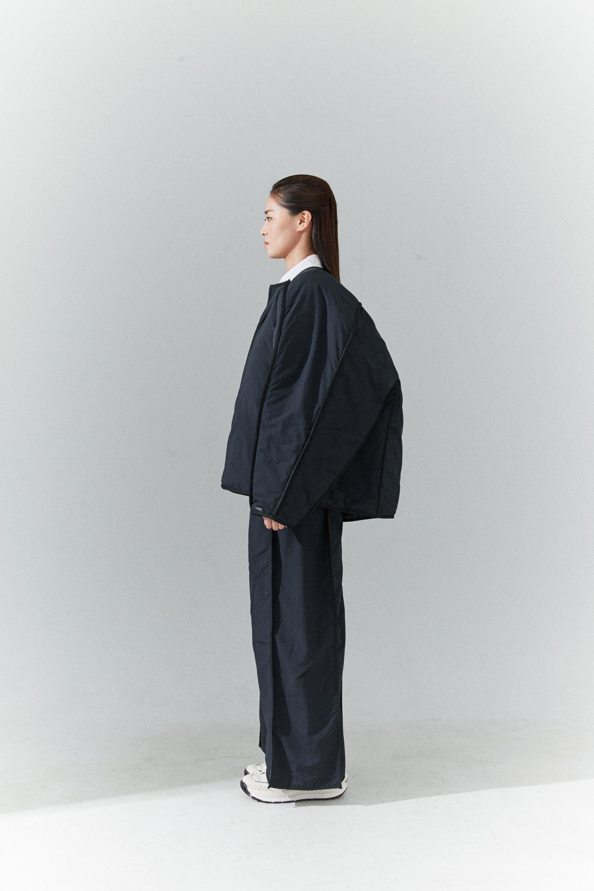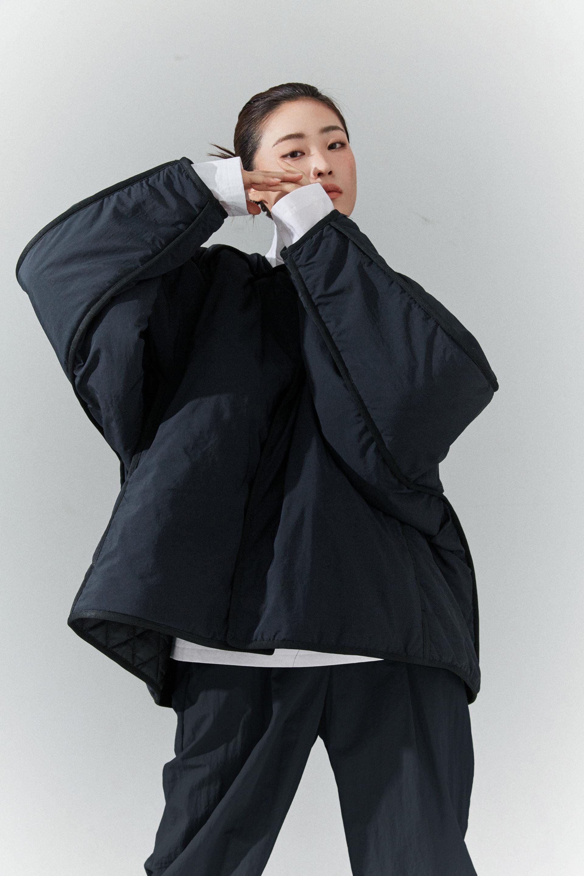 전면에 투웨이지퍼, 전면과 옆면사이 모서리와 안쪽에 각각 주머니 디테일 적용